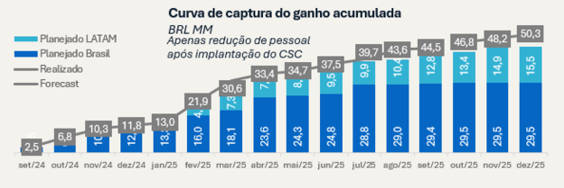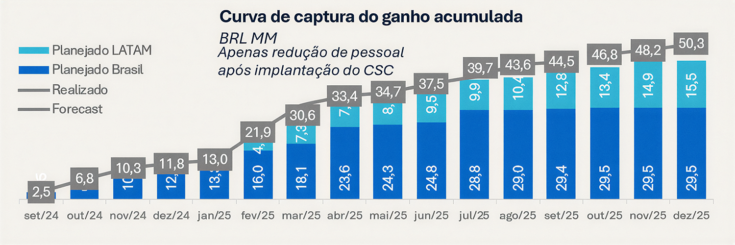 Os ganhos foram capturados de forma acumulada ao longo do ciclo de implantação.